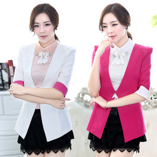 簡介: 建議零售價 ¥118.00 貨號 8302# 產地 廣州 品牌 自主 主圖來源 實拍有模特 貨源類別 現(xiàn)貨 風格 韓版 圖案 純色 面料 棉類混紡 成分 50%-70% 版型 修身型 衣長 普通款(50cm<衣長≤65cm) 領型 西裝領 衣門襟 暗扣 袖長 五分袖/中袖 袖型 常規(guī)袖 流行元素 拼接,撞色 工藝 拼貼/拼接 上市年份/季節(jié) 2015春季 顏色 白色,黃色,黑色,玫紅 尺碼 S,M,L