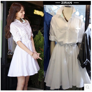 • 歐洲站2015新款復(fù)古氣質(zhì)收腰修身顯瘦長(zhǎng)袖a字女式連衣裙襯衫裙 /