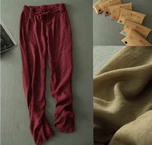 無印良品女式棉麻 亞麻 長褲直筒褲大碼休閑寬松文藝 褲子 /