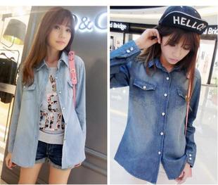 2015爆款女裝 歐美風(fēng)水洗漸變色長袖牛仔襯衣 襯衫 外貿(mào)廠家直銷 /
