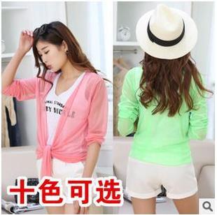 2015春夏新款甜美雪紡開衫輕柔針織衫加大碼空調(diào)衫防曬衣一件代發(fā) /