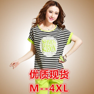 2015新款運動套裝短袖條紋女夏大碼蝙蝠袖休閑套裝顯瘦女 /