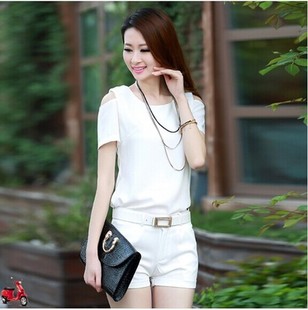 新款潮露肩女t恤短袖短褲休閑兩件套裝小香風(fēng) /