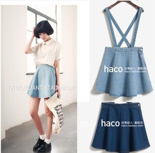 歐美牛仔大擺傘裙高腰單扣可拆吊帶短裙/半身裙 /