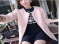 2015新款毛呢外套甜美小香風(fēng)氣質(zhì)中長款釘珠鑲鉆呢料大衣廠家直銷 /