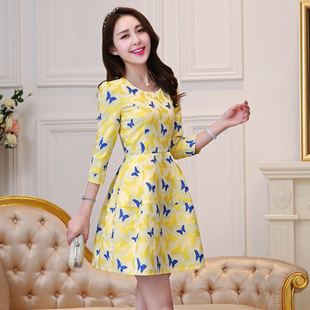 2015春夏新款七分袖修身蝴蝶花百搭彈力包臀顯瘦連衣裙廠家直銷 /