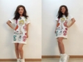 蔡卓妍同款短袖純棉卡通圓領中長款寬松芭比娃娃T恤 /