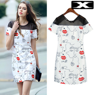 歐洲站2015夏季新品修身顯瘦印花打底裙春夏季短袖連衣裙 /