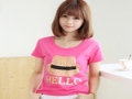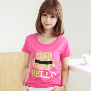 2015夏季圓領(lǐng)短袖T恤女裝 帽子女孩印花可愛學(xué)生修身T恤半袖 /