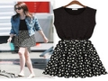 2015最新時(shí)尚日系清新性感百花印花低胸吊帶上衣+高腰半身裙套裝 /