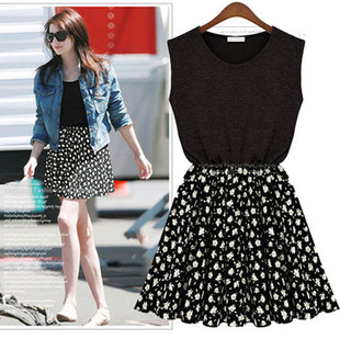歐洲站歐美女裝2015春夏新款時(shí)尚清新小碎花無(wú)袖背心連衣裙 /