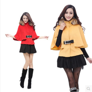 秋冬爆款羊絨毛呢斗篷外套披肩短款蝙蝠袖韓版修身時尚女裝潮 /