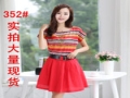 2015夏裝新款韓版時(shí)尚短袖棉麻大碼連衣裙女顯瘦休閑條紋裙子 /