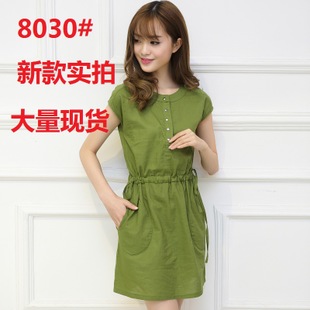 棉麻連衣裙女夏季2015夏裝女裝新款韓版潮中長款修身顯瘦短裙裙子 /
