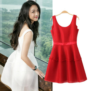 全智賢湯唯明星同款蜂窩狀網(wǎng)布眼蓬蓬連衣裙 背心網(wǎng)格裙 /