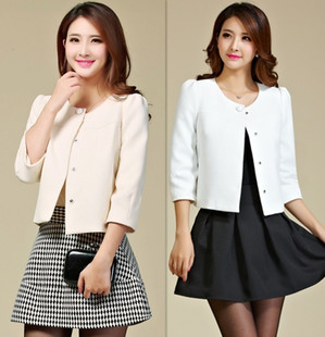 2014秋冬新款歐美修身七分袖OL小外套百搭薄短款小香風(fēng)女裝 /