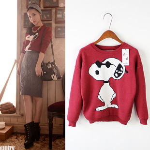 2014秋冬款韓國代購雜志新款卡通圖案史努比套頭毛衣針織衫# /
