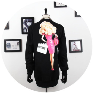 MARKMIU歐洲站 2014秋冬歐美潮芭比娃娃鐳射印花套頭衛(wèi)衣T恤 /