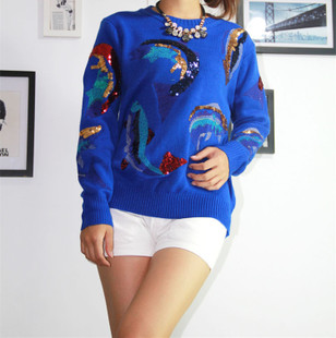 MARKMIU歐洲站 歐美大牌街拍款海洋魚繡花釘珠塔頭高品質(zhì)毛衣 /