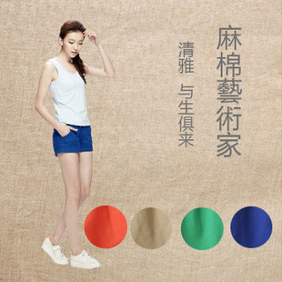 外貿(mào)寬松大碼糖果色 亞麻文藝森女熱褲子2015夏棉麻短褲復(fù)古胖MM /