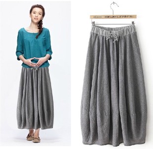 15夏外貿(mào)原單寬松女棉麻半身裙優(yōu)雅文藝森女純色亞麻長裙子大碼 /