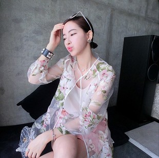 2015夏季防曬衣長袖防紫外線女開衫中長款防曬服透明薄款外套 /