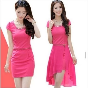 2015新款女裝夏季雪紡不規(guī)則連衣裙子前短后長燕尾裙擺修身 /