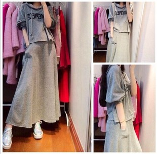 2014蝙蝠袖連帽寬松上衣+大裙擺長裙衛(wèi)衣套裝 /