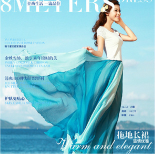 2015春季大擺拖地半身裙雪紡雙色拼接波西米亞長(zhǎng)裙 半身大擺裙 /