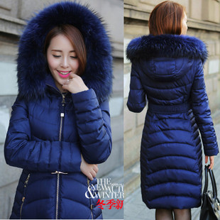 2014新款高檔正品深藍色中年媽媽裝長款修身羽絨服加厚保暖大毛領 /
