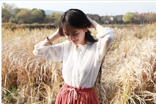 春季新款 白色春秋款棉布小翻領(lǐng)清新文藝襯衫女長袖 /