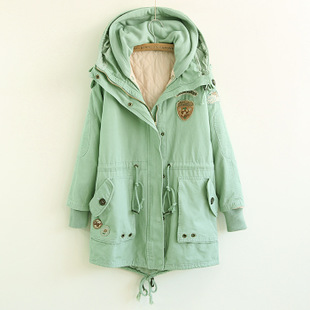 2014秋冬新款可脫卸羊羔毛 日系寬松連帽中長款棉衣外套 /