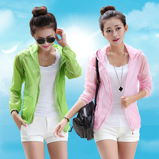 防曬衣防紫外線空調(diào)衫糖果色長袖皮膚衣連帽短外套女 /