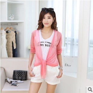 2015夏季女裝爆款防曬衣 甜美風(fēng)雪紡衫短款長袖防紫外線女外套 /