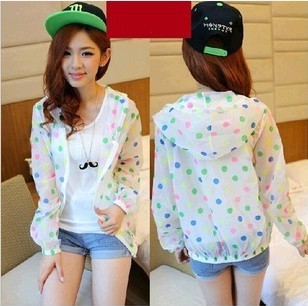 新款長袖連帽防曬衣女 薄外套彩色圓點防曬衣 防曬服廠家直銷 /