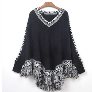 韓版流蘇披肩斗篷V領(lǐng)寬松針織秋冬女式 /