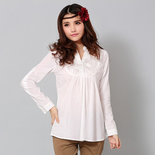 新款繡花襯衣立領(lǐng)長袖襯衫中長款女士秋 0435 /