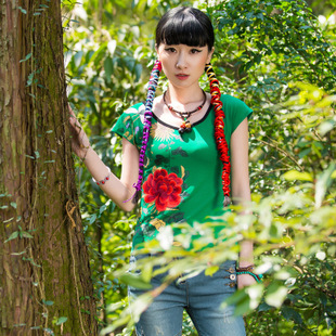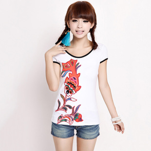 女裝正品 2015春夏新款 貼布繡圓領(lǐng)繡花修身T恤短袖 女22130027 /