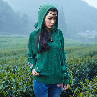 2015春秋裝新款女裝繡花長袖連帽套頭毛衣針織衫女23160038毛衣 /
