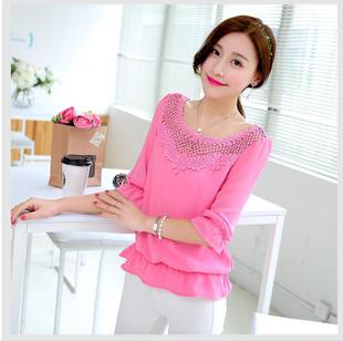 簡介: 產(chǎn)品類別 雪紡衫 貨源類別 現(xiàn)貨 風(fēng)格 韓版 圖案 純色 主圖來源 其他來源 款式 套頭 工藝 勾花鏤空 面料名稱 雪紡 面料主材質(zhì)分類 合成纖維 面料主材質(zhì) 錦綸 面料主材質(zhì)含量 81%-90% 面料次要材質(zhì)分類 再生纖維 面料次要材質(zhì) 醋酸纖維 面料次要材質(zhì)含量 10%-20% 貨號 1131 是否庫存 是 庫存類型 整單 版型 寬松型 衣長 普通款(50cm<衣長≤65cm) 領(lǐng)型 圓領(lǐng) 袖型 泡泡袖 袖長 七分 流行元素 褶皺,荷葉邊,鏤空 上市年份/季節(jié) 2015春季 顏色 白色,玫紅色 尺碼 M,L,XL