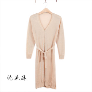 2014初秋外貿(mào)原單全亞麻苧麻超薄長袖超長款外套針織防曬衣開衫 /