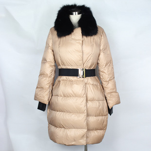 批發(fā)2015女裝新款特價(jià)可脫卸超大毛領(lǐng)休閑雙排扣羽絨服中長款女 /