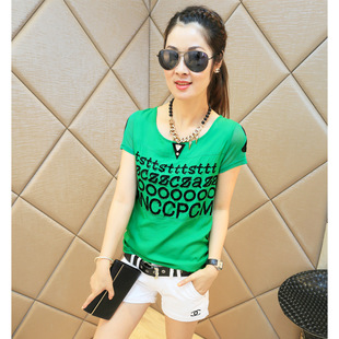 現(xiàn)貨韓版時尚潮流款數(shù)字拼接顯瘦短袖上衣女t恤 /