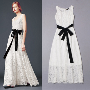 3055#春夏裝新款歐美時(shí)尚修身顯瘦無袖蕾絲長款連衣裙 /