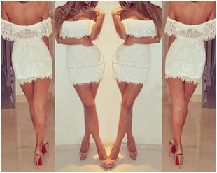 2014新款 歐美性感連衣裙 白色蕾絲低胸夜店裝 /