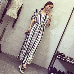 夏季新品女裝 休閑百搭優(yōu)雅氣質(zhì)V領(lǐng)露背連衣褲 配腰帶 /