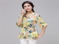 女裝 實(shí)拍 2015新款夏裝韓版印花雪紡衫 寬松五分袖百搭雪紡衫 /