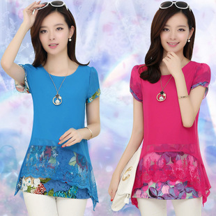 6515#新款夏日清涼雪紡上衣韓版中長(zhǎng)款寬松大碼短袖雪紡衫女 /