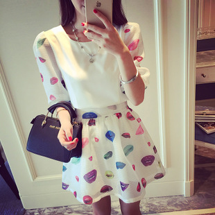 2015夏季新款韓版香水瓶印花休閑短裙套裝短袖上衣+A字裙兩件套 /