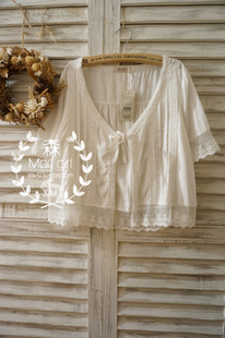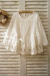 日單 森林系 稻城亞丁 立體花朵雙層紗下擺娃娃款白襯衫 森女甜美 /